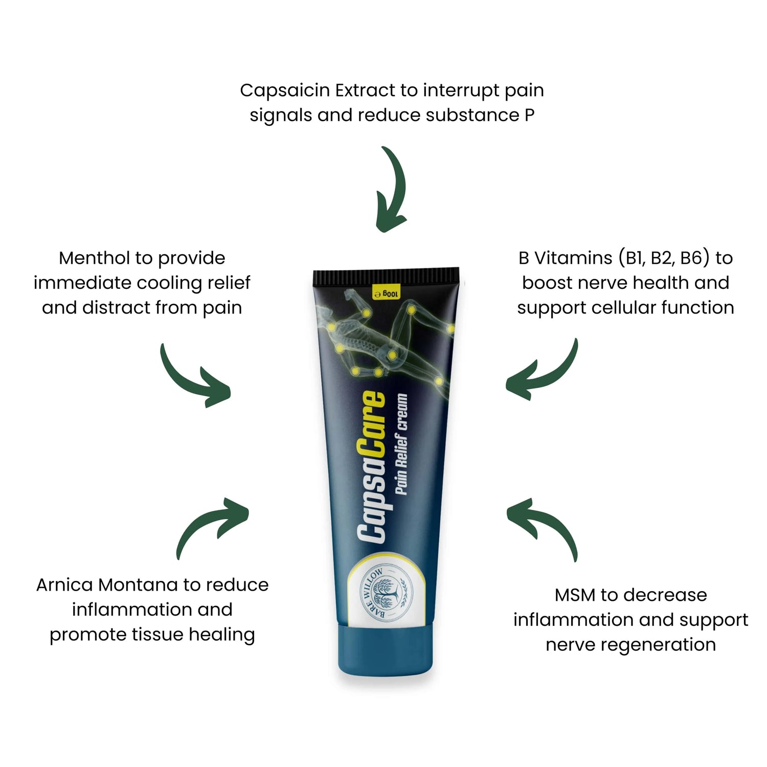 With CapsaCare Nerve Relief Cream, you're addressing nerve pain with a comprehensive blend of therapeutic ingredients—all in one easy-to-use application.